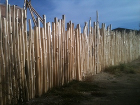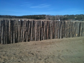 Above: Coyote fence with handpeeled aspen poles amd railroad tie posts. Taos, New Mexico.