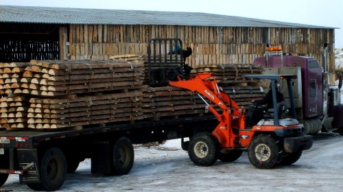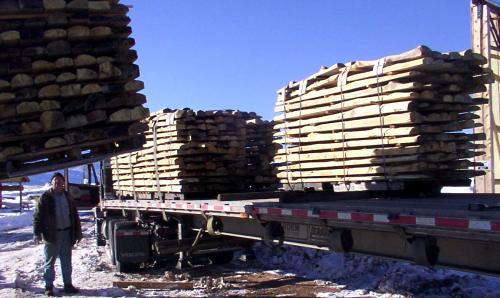 Unpeeled 1/2 log siding being loaded for shipping