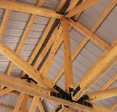 Top Left: Pole truss structure of Westcliffe pavilion Top Right: Log entry way with pole fence