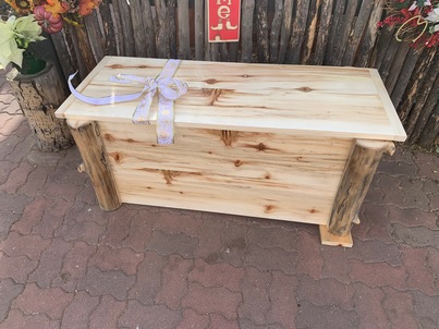 Aspen blanket chests, $900 +tax each. Solid aspen panel construction with log corners. Lots of storage in these