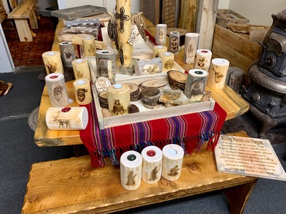 We hand produce rustic wood furnishings, perfect for any room in your home or cabin. Our gallery features the expert woodcraftings of Seth Peters, our artist in-residence! Custom laser engraving services are available for most small to mid-sized items.